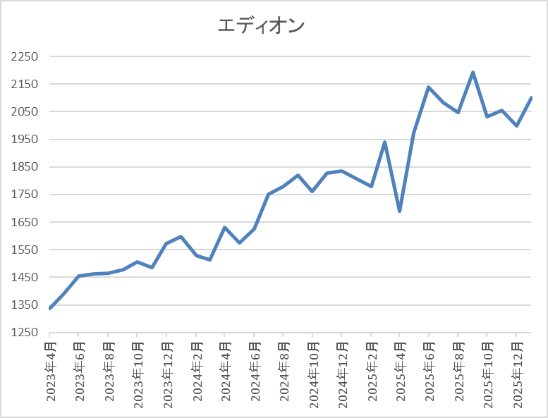 2022年頃までの株価は1000円台半ばで停滞が続いていましたが、2024年4月には2628円まで上昇しました。