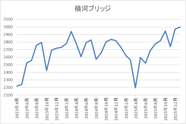 横河ブリッジHDについて、ここ数年の業績は増益が続いていたなか、今期は人件費やIT費用の増加に加え、前期に計上した政策保有株式売却の反動で大きく減益見込みになっています。その辺りの影響もあってか、最近の株価も全体の強さと比較すると停滞していましたが、直近はさすがにじわじわ上昇しています。ただ、それでも依然2024年の高値付近で推移している事に加え、2027年度までの中計期間は10円ずつ増配する方針を早くも示しており、2028年の配当は現状から20円増配の年間140円計画と明記していますので、本格的な上昇に入る前に購入を狙っています。