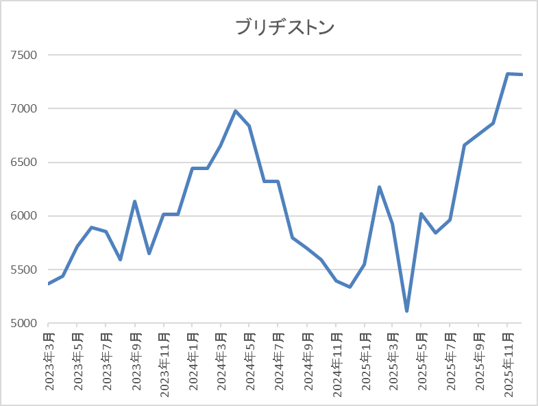 ブリヂストンは12月決算ですので、11月12日に第3四半期決算を発表しており、最終利益は2035億円と前年同期比492億円の減益になっていますが、通期最終利益、年間配当予測に変更はありません。