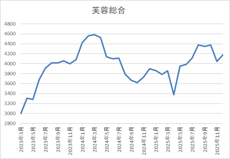 しかし、その後は低迷が続き、4月の暴落では3375円まで売られ、9月には4564円まで上昇しましたが、直近は4100円前後まで下落しています。