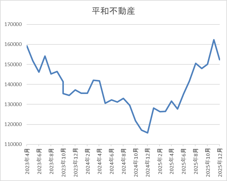しかし、そこからは右肩上がりの状況が続き、11月末には16万2300円まで上昇しましたが、直近は権利落ちもあり15万円前後まで下落しています。