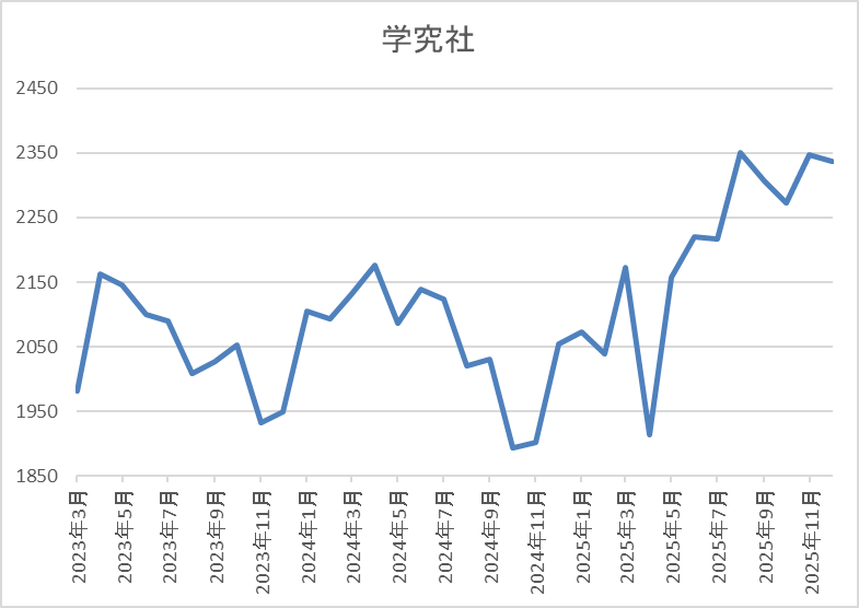 最後の銘柄は学究社で、今年何度か購入候補にした事はありましたが、タイミングが合いませんでしたので、改めて購入候補に選定しています。学究社は東京を中心に関東圏で都立中高一貫校や都立難関高校向けの対策塾として進学塾「ena」を運営しています。