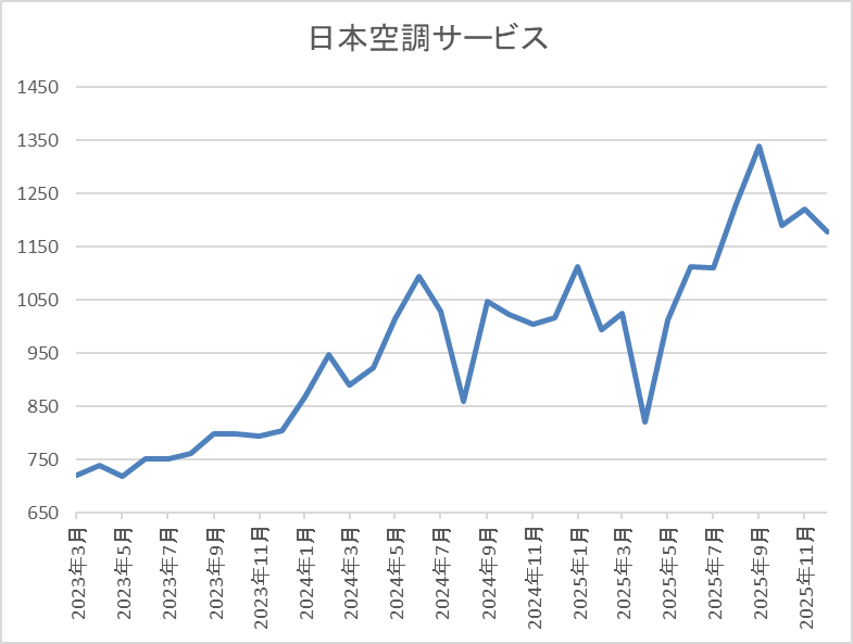 日本空調サービスについて、最近の業績は過去最高益が続いており、直近は増配幅も増えていたなか、8月には株主優待の新設も発表していましたので、株価も上昇傾向でしたが、直近は先週発表した株式の売り出しによる需給悪化を懸念して大きく売られています。