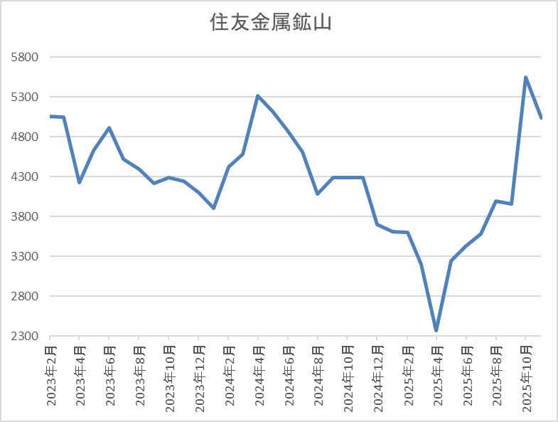 今までの内容から住友金属鉱山の投資判断について、業績は商品市況や為替の影響で増減が激しいですが、直近は金や銅価格の上昇で好調に推移しており、今期は連続で業績の上方修正を発表しています。そんななか、配当は配当性向35%の目安よりも下限のDOE2.5%の方が依然大きくなる見込みのため増額されておらず、直近の株価上昇で利回りは2%台まで低下している状況です。