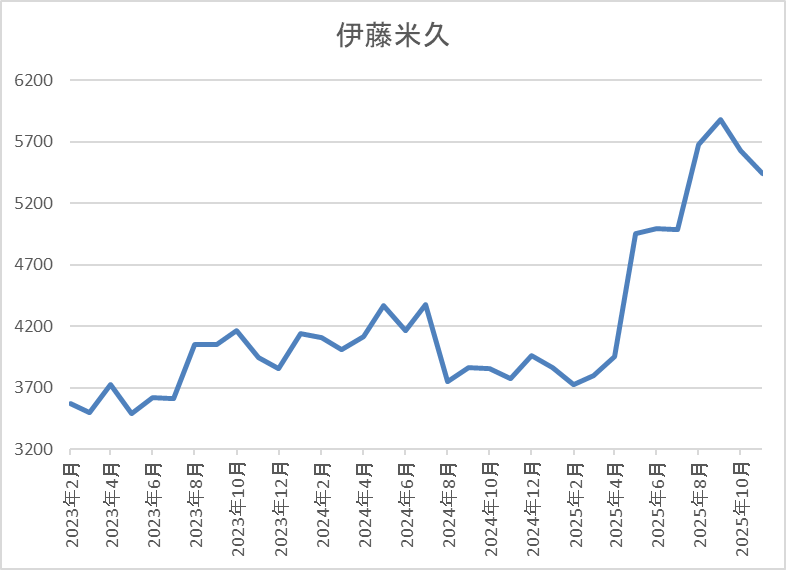 その後は再び4000円を割れる場面があり、3月に記念配当を発表した後は急騰して、9月には5880円まで上昇しましたが、直近は5500円前後で推移しています。