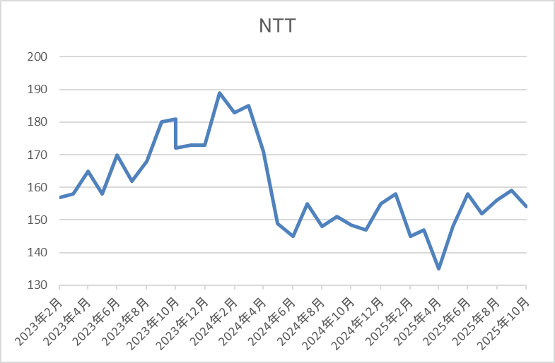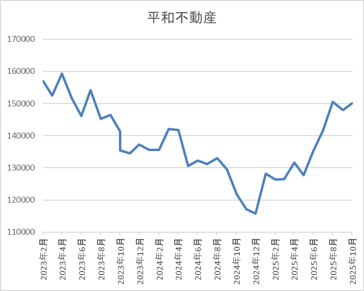そして、4月の暴落では135円まで売られ、8月には167円まで反発しましたが、直近は155円前後で推移しています。
