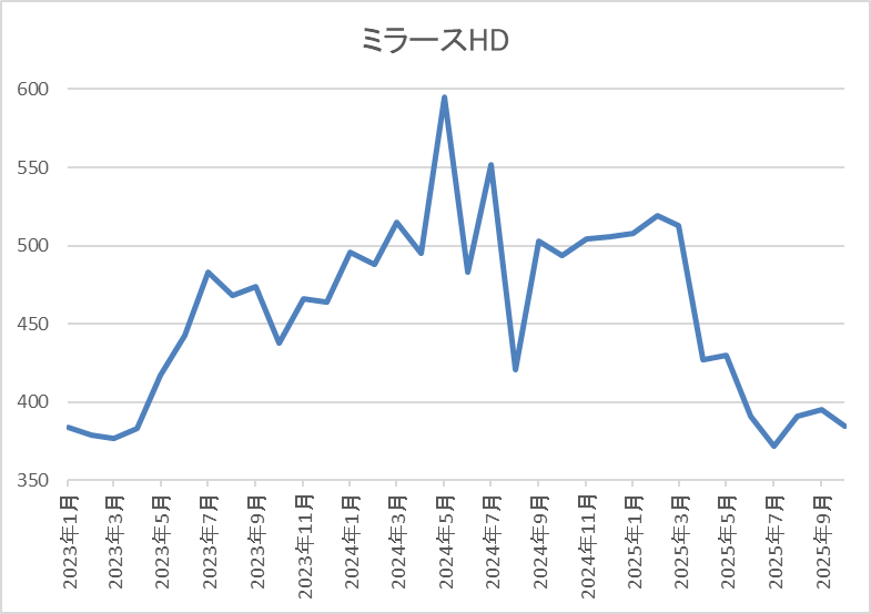 ミラースHDは8月8日に第1四半期決算を発表しており、最終利益は5億円の赤字と前年同期の黒字から赤字転換していますが、通期最終利益、年間配当予測に変更はありません。
