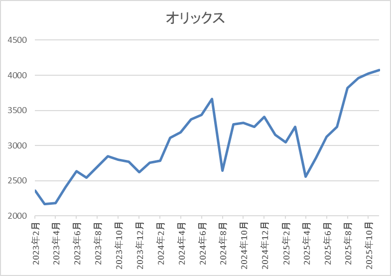 | オリックス | 8591 | 4173 | 10.6 | 1.05 | 120.01 | 2.88 | 30.4 |