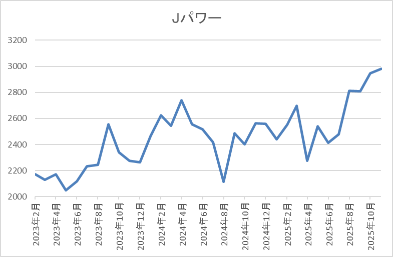 最後の銘柄はJパワーで日本最大の卸電気事業会社です。現在全国約100ヶ所の発電所で水力、風力、地熱、再生可能エネルギー、石炭火力など様々なエネルギーを利用して発電し、作った電力を各地域の電力会社などへ販売しています。