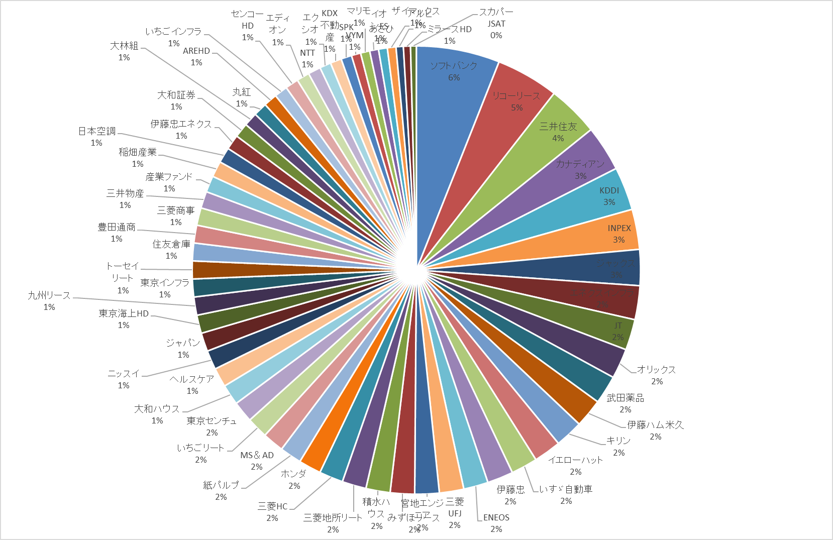 続いて業種別のポートフォリオグラフについて、こちらもアステラス製薬の買い増しで医薬品業種が少し増えていますが、大きく変更はありません。業種についても来年は更に新規業種を増やす予定ですので、引き続きバランスも重視して購入を行っていくつもりです。