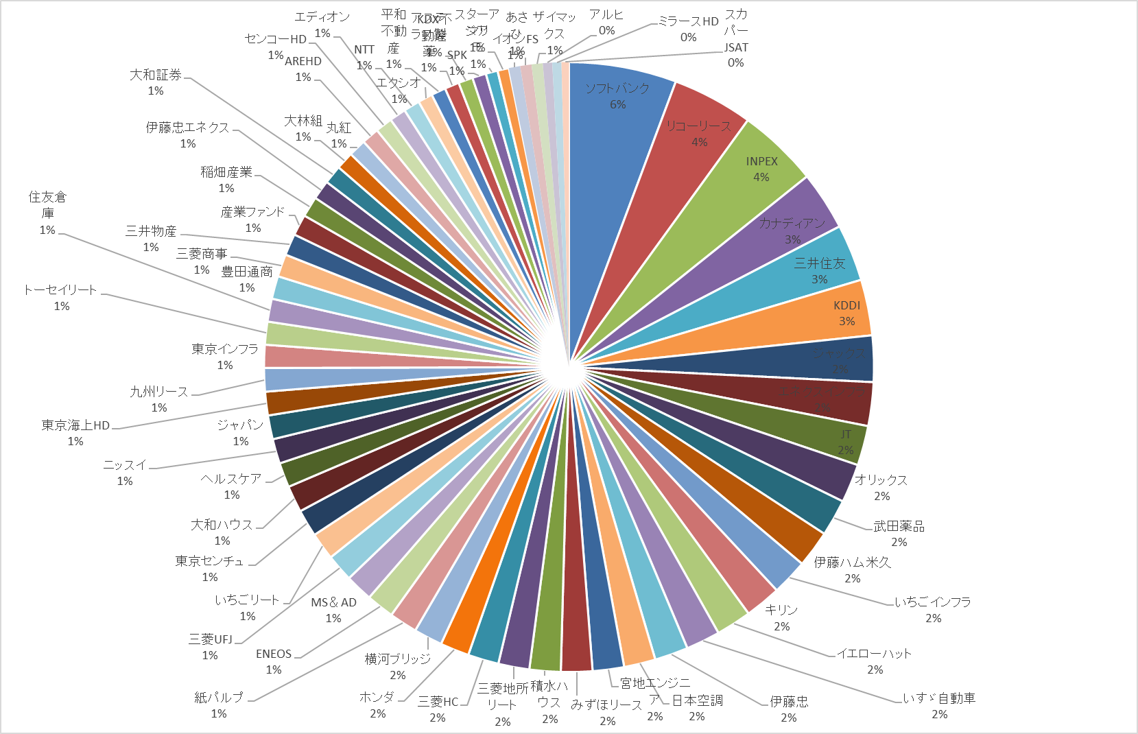 続いて業種別のポートフォリオグラフについても、1月の売買で大きく比率が変わっています。そんななか、今月の購入で新たな業種の購入はありませんでしたが、今後は更なる新業種も狙っていく予定です。