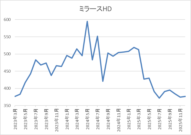 ミラースHDの配当方針は、業績に応じた適正な配当を安定的かつ継続的に実施するとしており、具体的な目安を配当性向35%~40%としているなか、2028年3月期までの中期経営計画中は下限を年間21円とし、累進配当も導入としています。