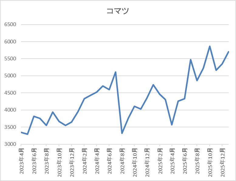 今までの内容からコマツの投資判断ですが、今期は期初から関税影響を織り込み、想定為替レートも135円/ドルと厳しめに設定していましたので、第2四半期決算での上方修正はある程度想定内だったかと思います。そのため、決算後の株価は上方修正でも大きく売られましたが、さすがに直近は上昇トレンドに変わっています。