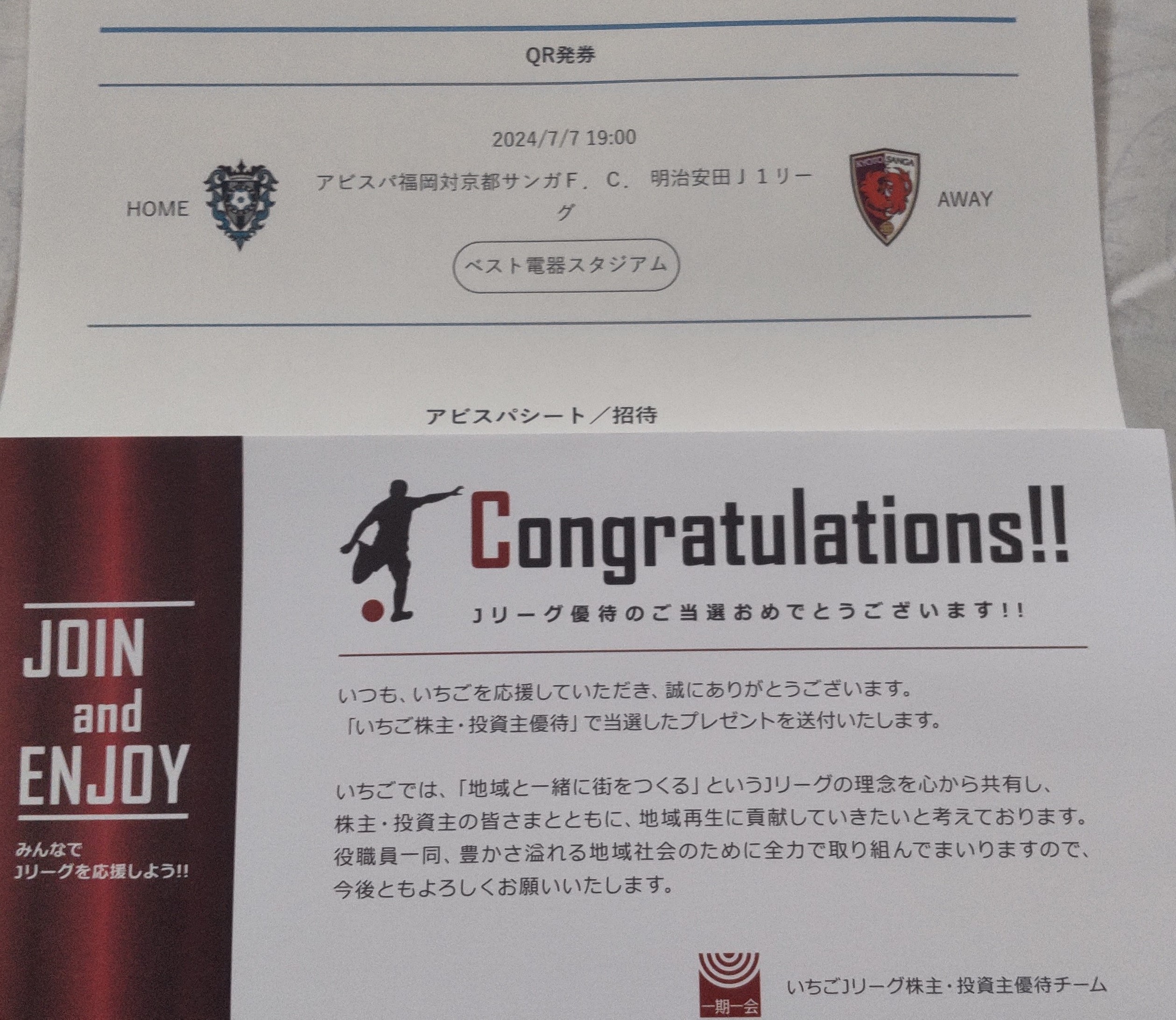 そのため、なかなか当たりませんが、個人的には毎試合申し込んでおり、今まで2回当選し、席もかなり良い席でしたので、サッカーファンには嬉しい株主優待です。