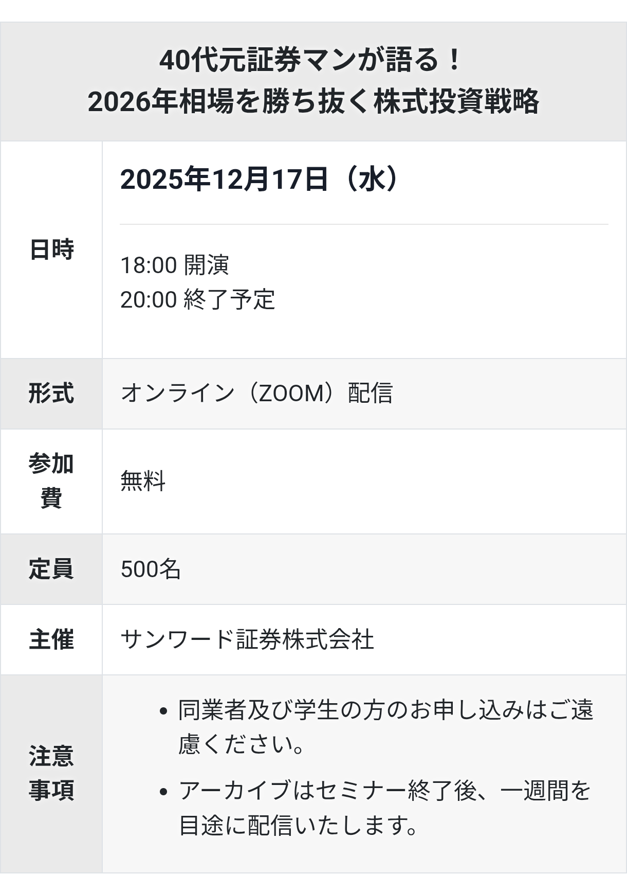 そんなWEBセミナーは12月17日(水)の午後18時からのスタートとなっていますが、当日は都合が悪い方でも後日、アーカイブで視聴できますので、是非下記リンクからお申込みください。
