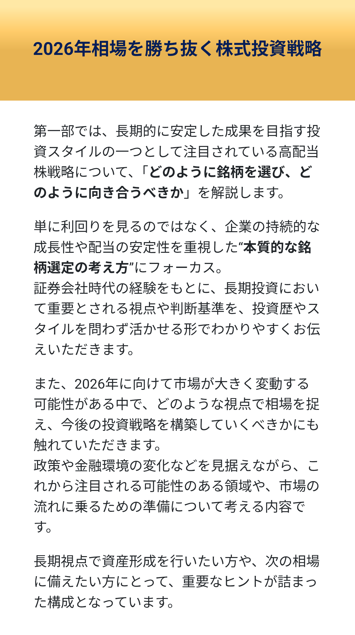 無料WEBセミナー『2026年相場を勝ち抜く株式投資戦略』の内容